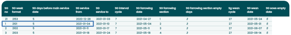 - I den følgende opsætning af LGM i MyAgroVision vil der være fokus på løbegruppe 1 med start dato 04/01/2021 (ses i de to røde bokse på billedet herover)